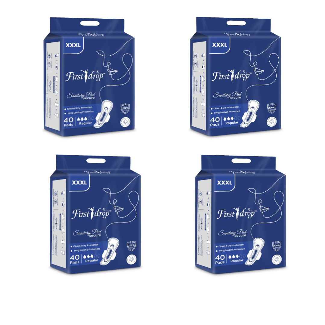 FirstDrop Cottony Soft Sanitary Pads offer reliable protection and comfort with advanced LeakLock Technology and odor control. These 2XL pads absorb up to 100% of fluid, making them ideal for all-day and overnight use. Designed with a quick-dry surface and breathable materials, they ensure a dry, comfortable, and hygienic experience.